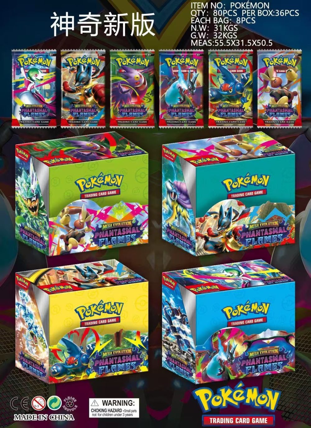 Rozmiar/ Kolor:           36 SASZETKA Z KARTY Mega Evolution PHANTASMAL FLAMES -BOX 360 KARTY