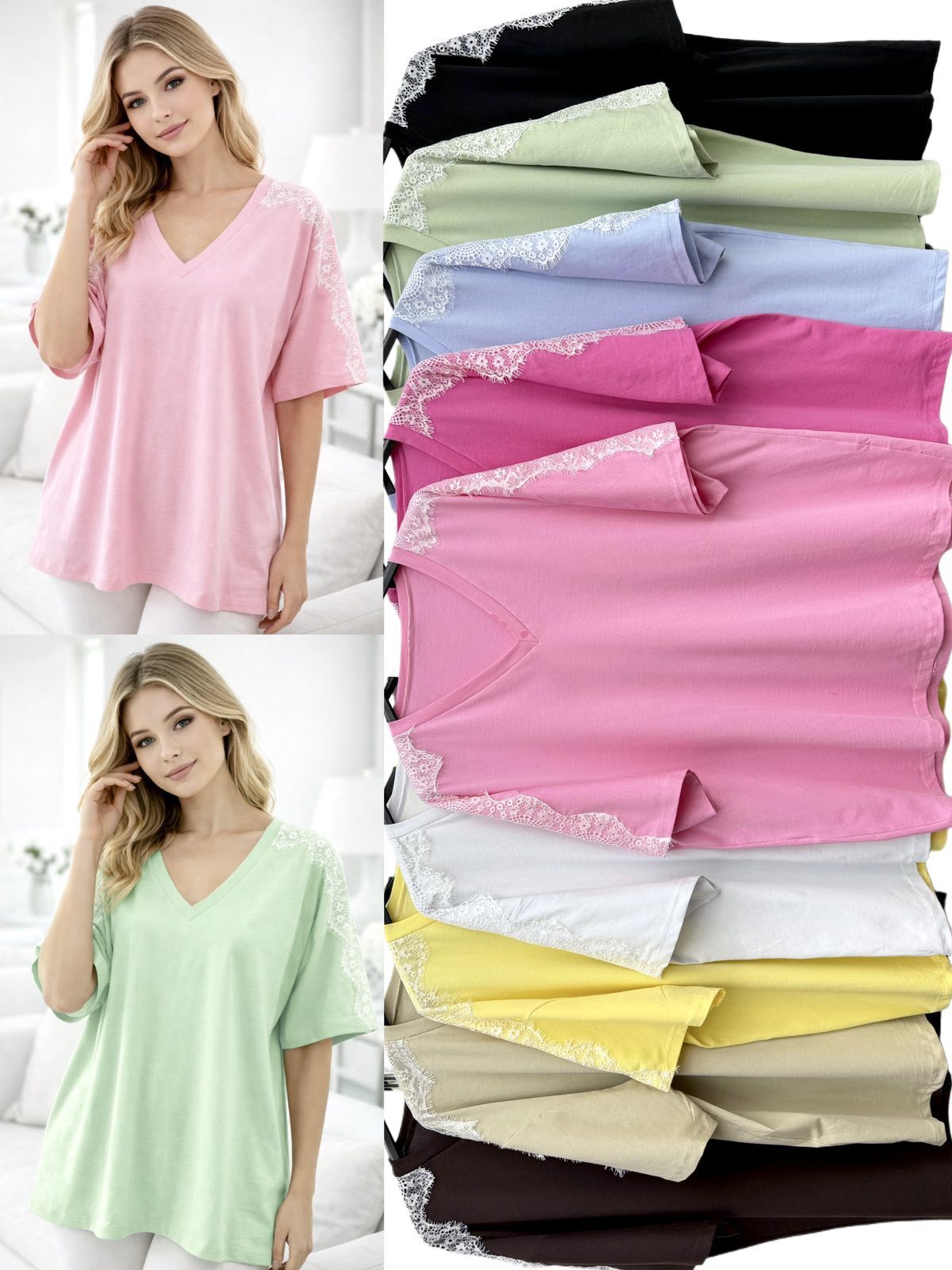 Rozmiar/ Kolor: Bluzki Biust do 140cm_ dlugosc 75cm Damskie wloskie_ Size uni _paczka 6szt_mix kolor