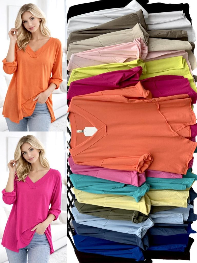 Bluzki Biust do 140cm_ dlugosc 75cm_ DAMSKA Włoskie_ Size uni_ paczka 6szt_mix kolor