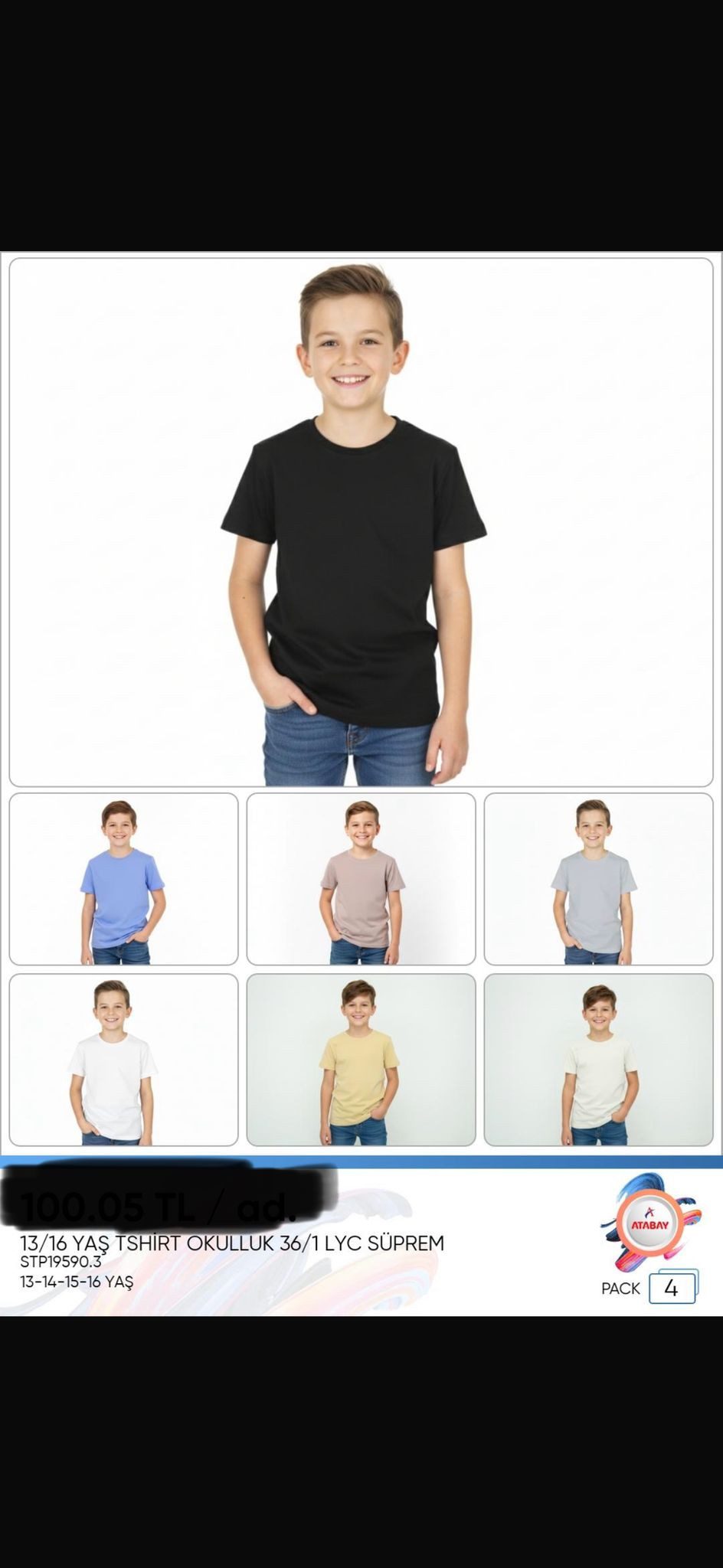 Rozmiar/ Kolor: Bluzki DZIECIĘCA size 13-16 lat _ paczka 4szt _1 kolor