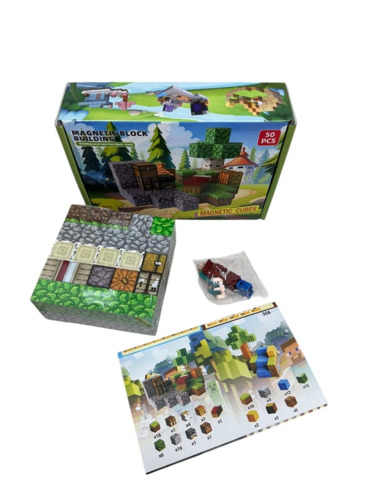 C KLOCKI MAGNETYCZNE MINECRAFT KLOCKI SZEŚCIANY 50 KLOCKÓW + 1 FIGURKI MOCNE 5007281