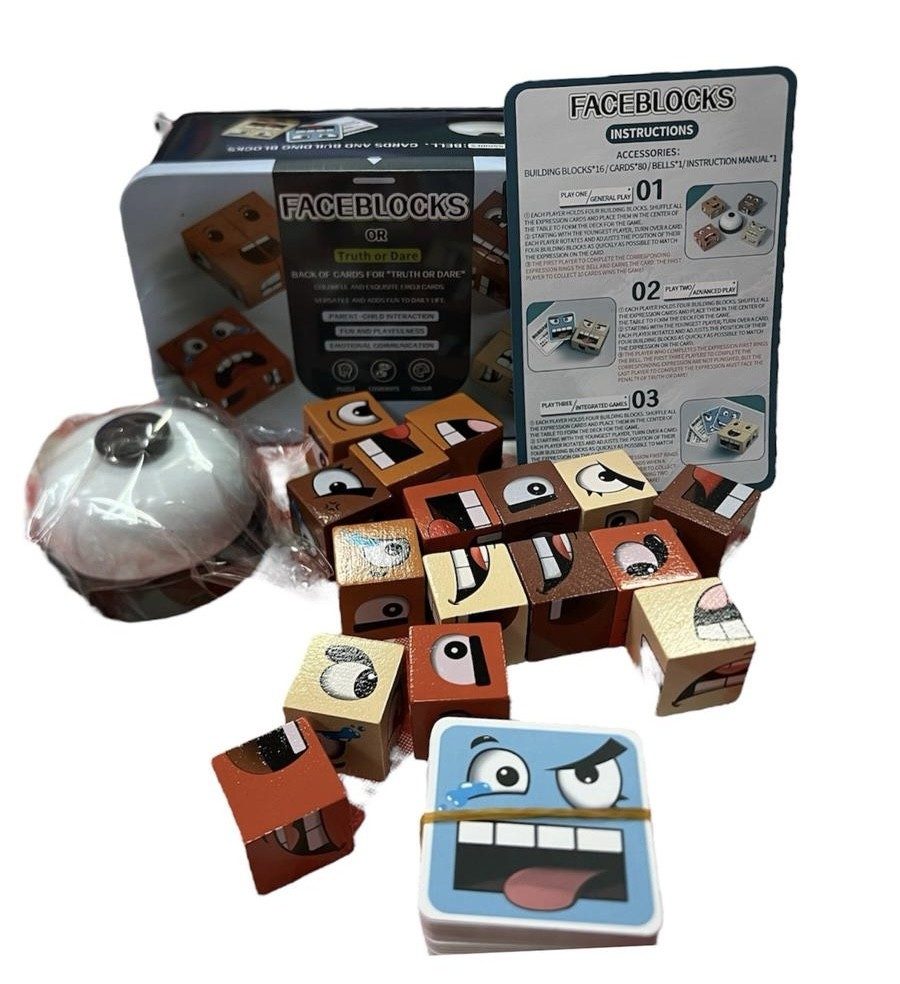 Rozmiar/ Kolor: Drewniane klocki gra Minki z dzwonkiem buźki układanka logiczna