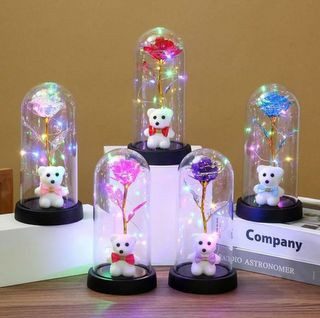 DUŻA wieczna róża LED Z MISIEM 13918