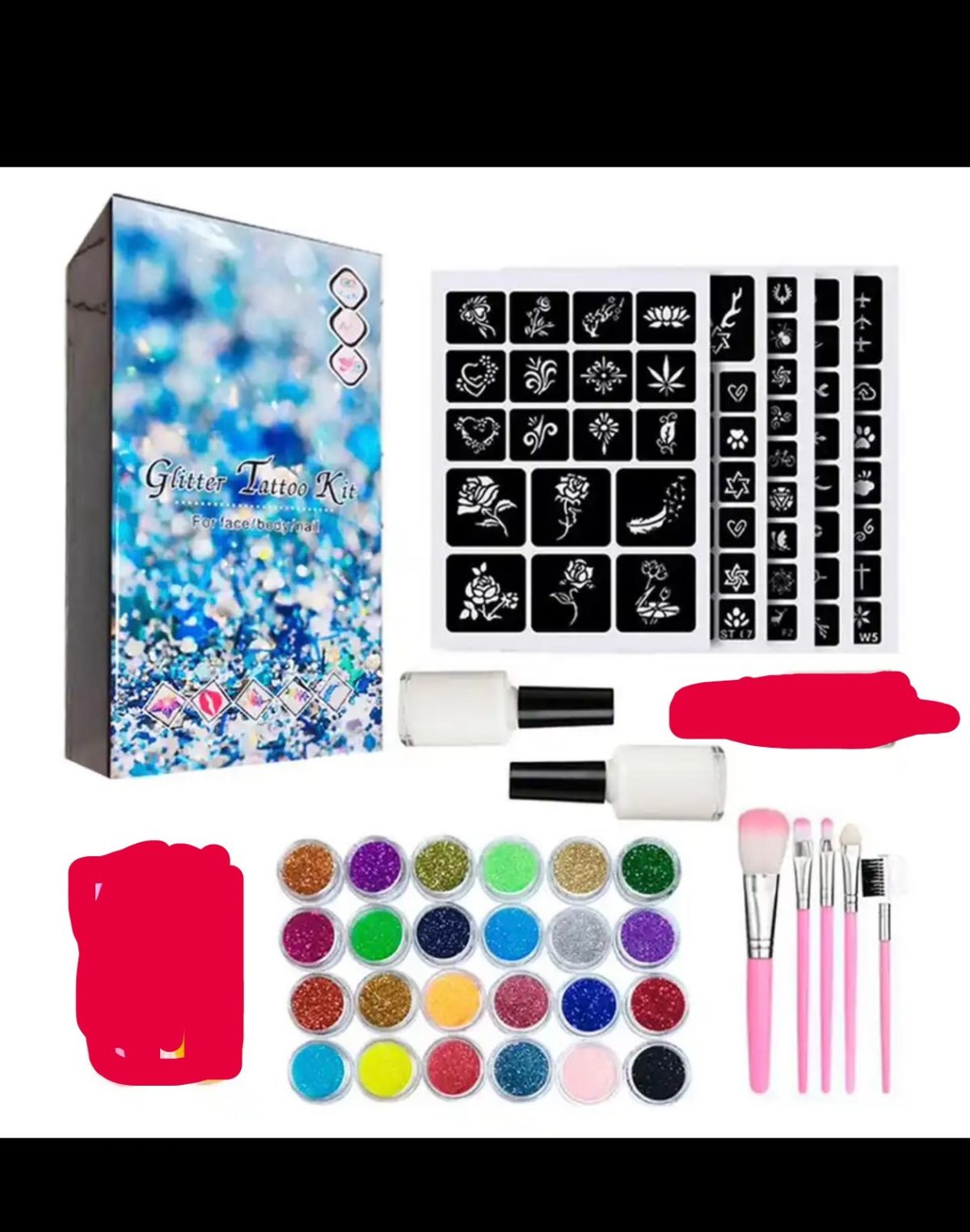 Rozmiar/ Kolor: DUŻY ZESTAW DO TATUAŻY SZABLONY TATUAŻE BROKATOWE