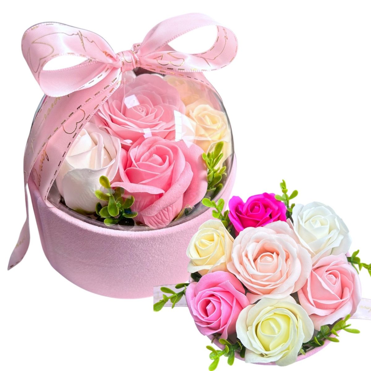 FLOWERBOX Z KWIATAMI MYDLANYMI PREZENT PUDEŁKO UPOMINEK KWIATY RÓŻE MYDLANE