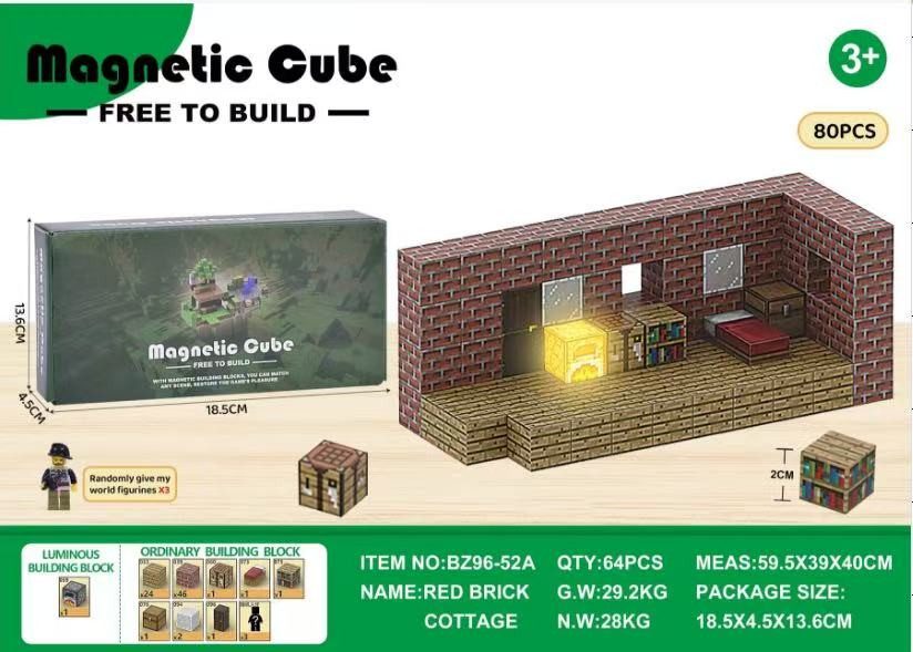 Klocki magnetyczne konstrukcyjne Minecraft 80el. sześciany bloki pixele 1754084