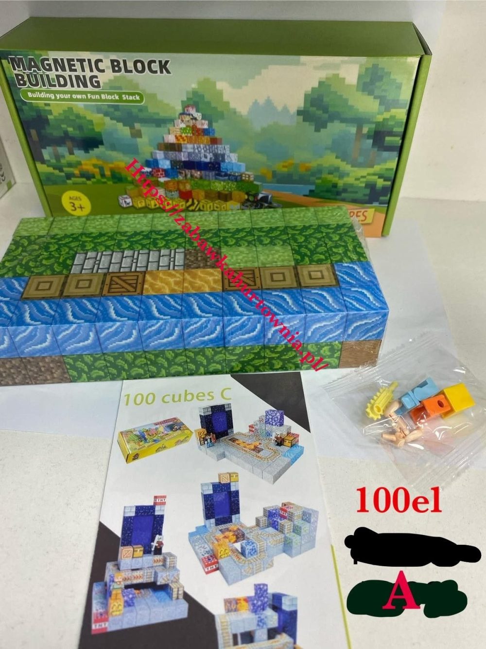 KLOCKI MAGNETYCZNE MINECRAFT KLOCKI SZEŚCIANY 100 KLOCKÓW + 1 FIGURKI MOCNE 5319501
