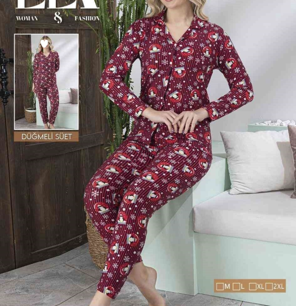 Komplet piżamy welurowe rozpinany damski z długim rękawem_ spodnie. Produkt Turecki (M-2XL_ 4) 6456308