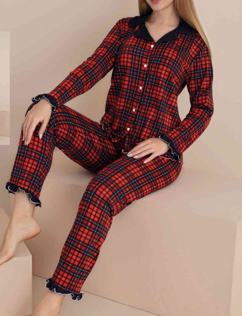 Komplet piżamy welurowe rozpinany damski z długim rękawem_ spodnie. Produkt Turecki (S-2XL_ 5) 6456321
