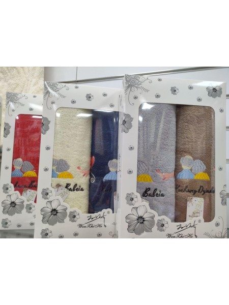 komplet Ręcznik Babcia i Dziadka_ w pudełko prezentowe : 70/140cm_ paczka 6szt mix kolor 9478578