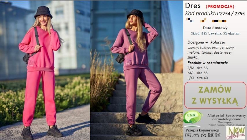 Rozmiar/ Kolor:           Komplety dresowe Damskie Tureckie _ Size s-xl _paczka 6szt_1 kolor