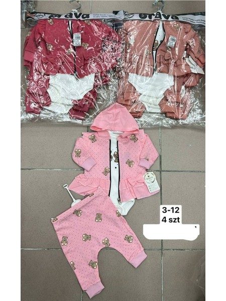 Komplety DZIECIĘCA rozm 3-12 m_ paczka 4szt _1kolor 6027110