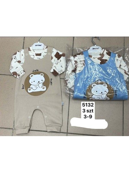 Komplety DZIECIĘCA rozm 3-9 m_ paczka 3szt _1kolor 6027021