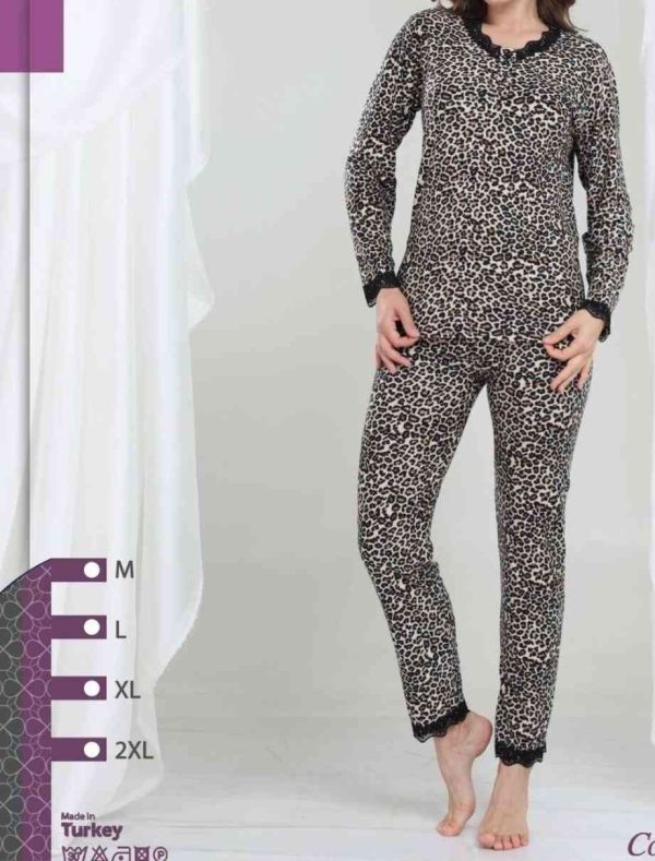 Komplety pizama welurowa z koronkowym wykończeniem_ modna panterka damskie. Produkt Turecki (M-2XL_ 4) 4744013