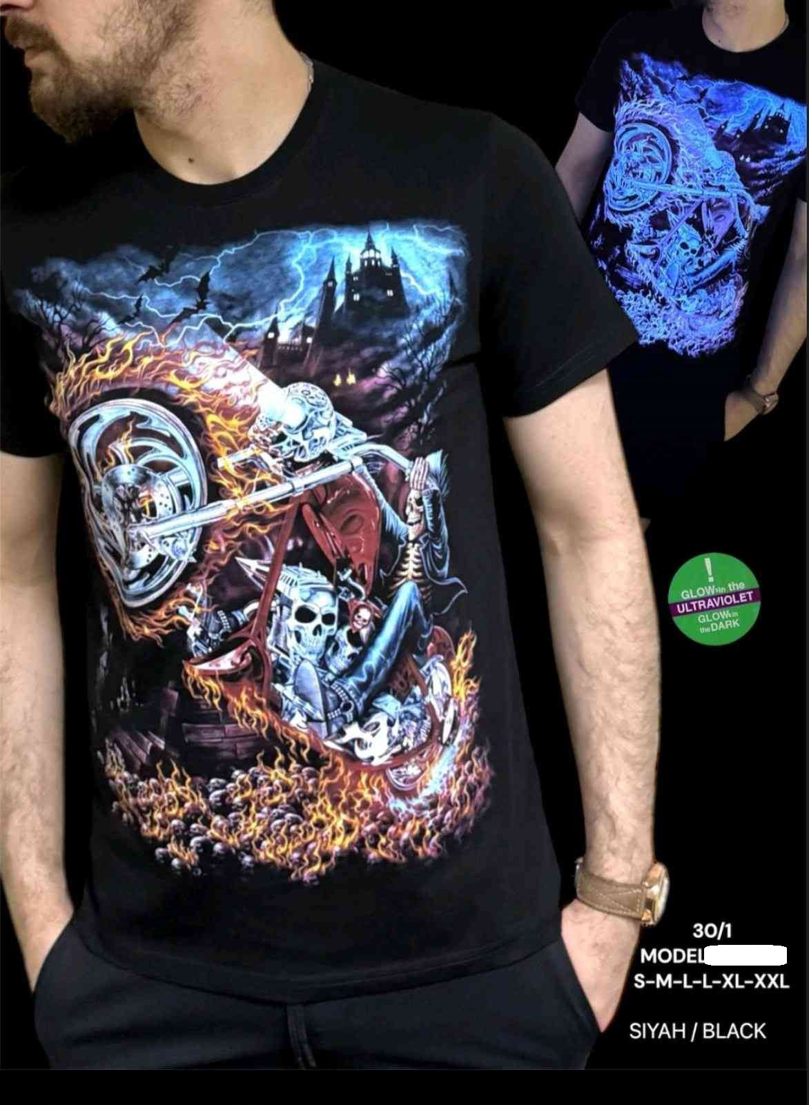 Koszulki męskie z nadrukiem świecącym w ciemności . Produkt turecki ( S-2XL_ 6) 5346814