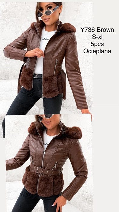 Kurtka skórzana damska (S-XL) Y736 BROWN 3838248