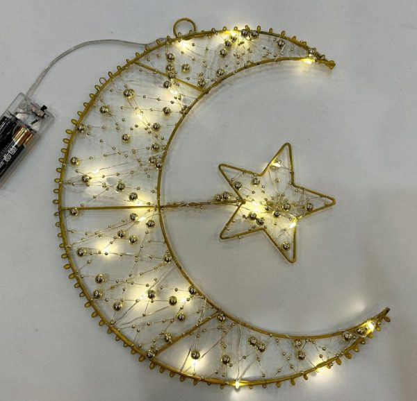 LAMPA SWIATECZNA P2387珠串平面星月 40CM/灯头数40L绑好 GS1935