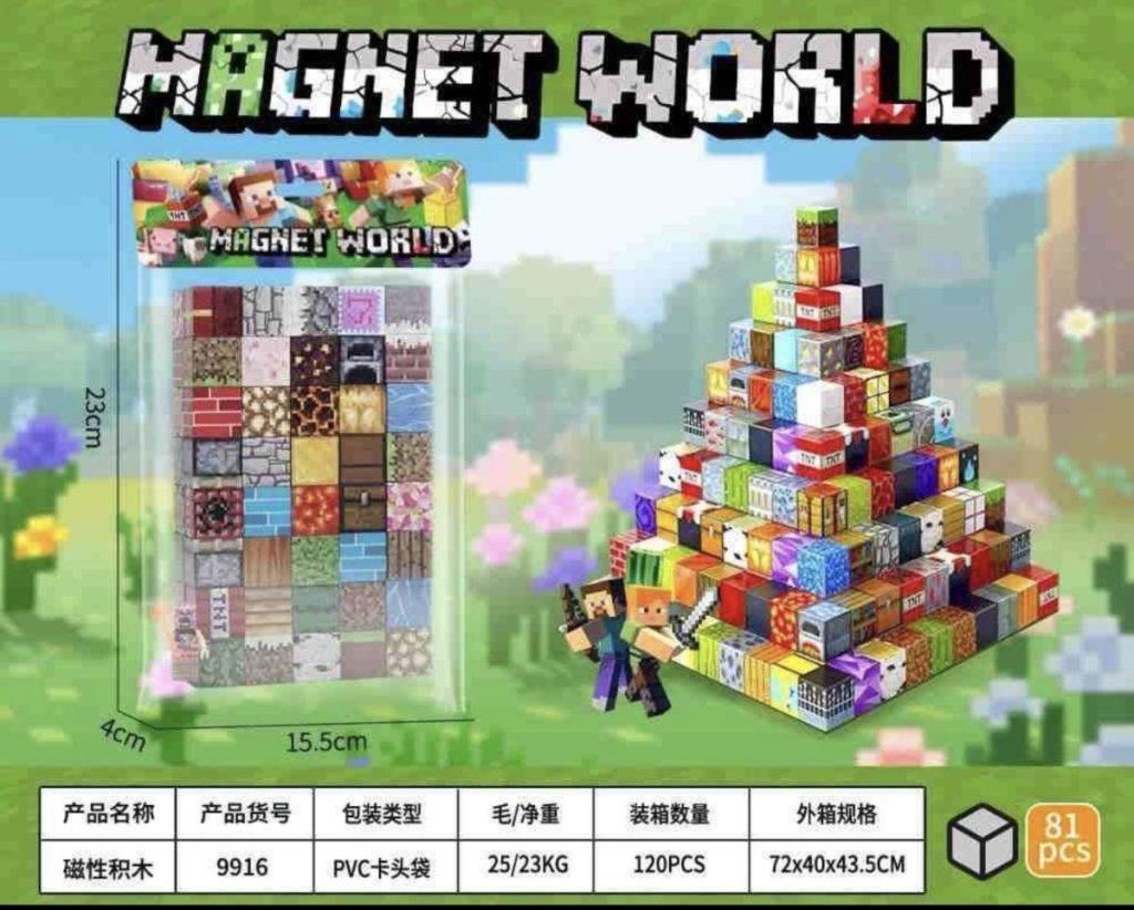 Rozmiar/ Kolor:           MAGNETYCZNY ZESTAW KLOCKÓW JAK MINECRAFT 80el + 1 figurki