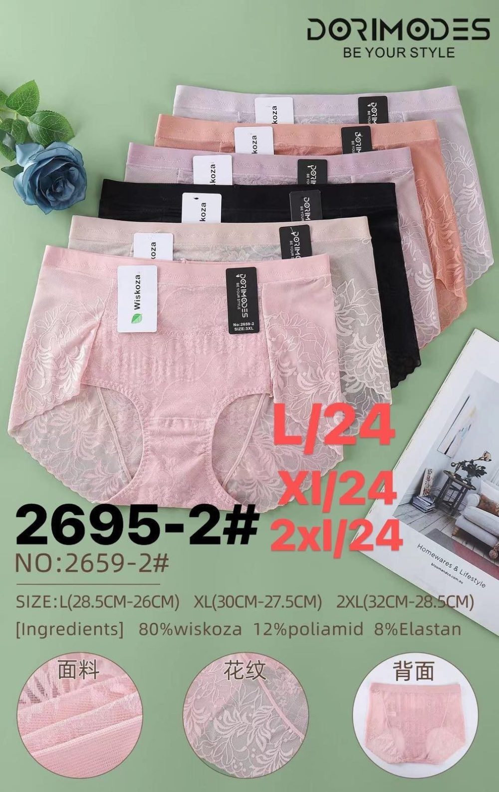 Rozmiar/ Kolor: Majtki damskie _ Size XL_ paczka 24szt _mix kolor