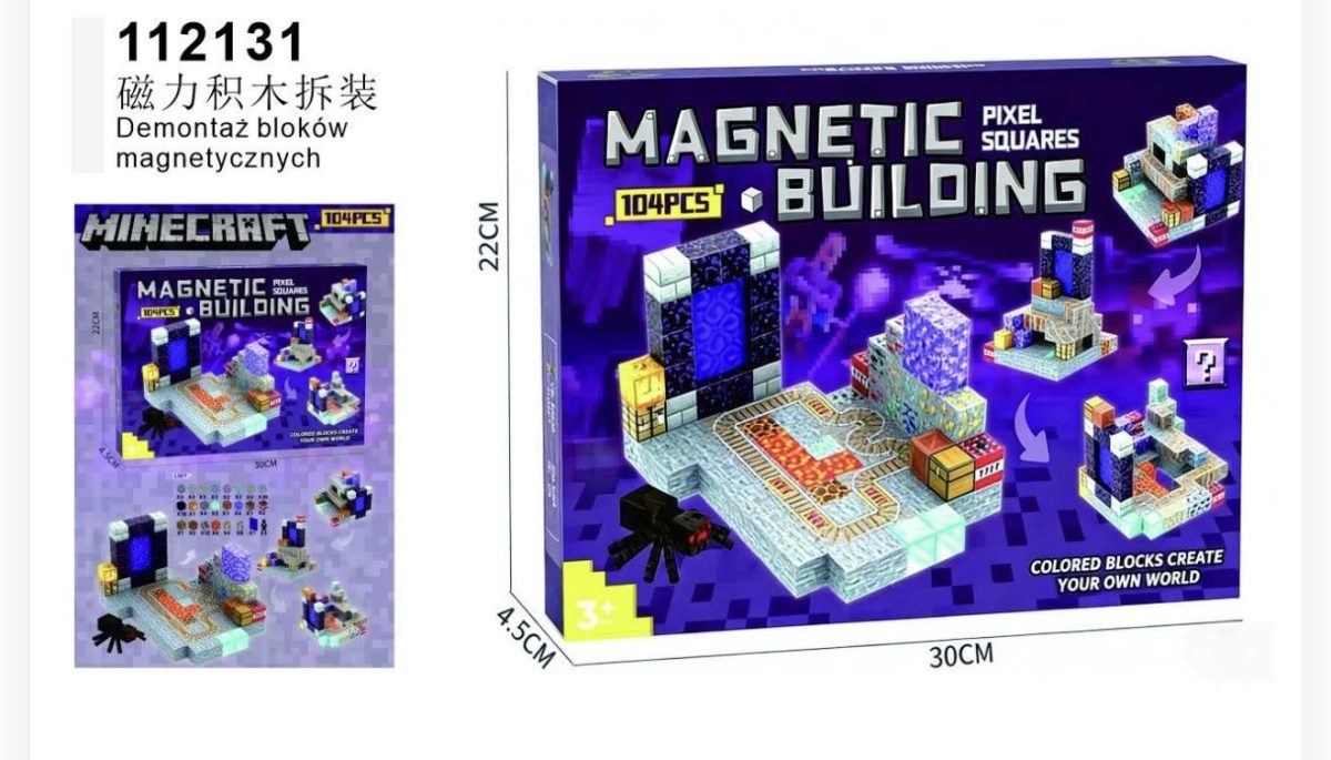 Rozmiar/ Kolor:           MINECRAFT KLOCKI MAGNETYCZNE 104 PCS
