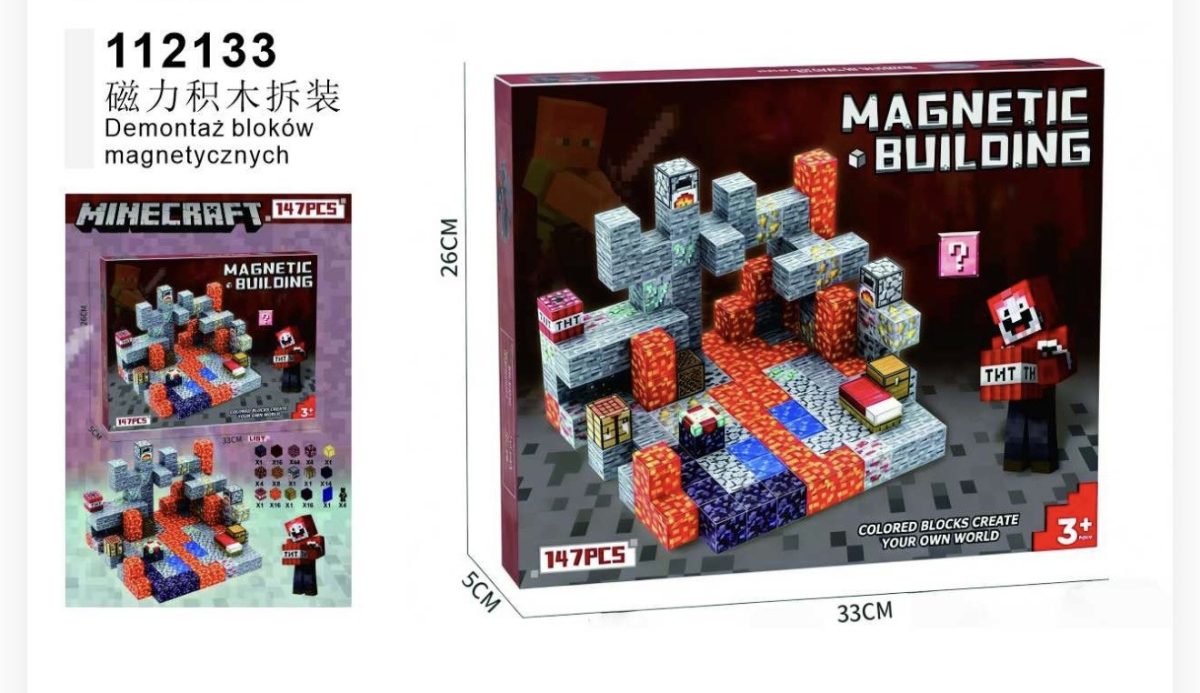 Rozmiar/ Kolor:           MINECRAFT KLOCKI MAGNETYCZNE 147 PCS