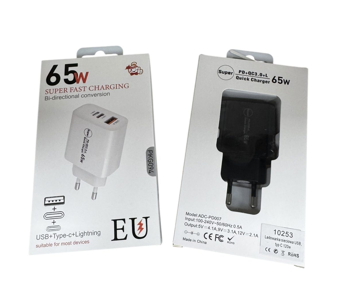 Rozmiar/ Kolor: MOCNA ŁADOWARKA FAST CHARGE 65W USB typ C QC USB-L+Kabel USB USB-C 120W ELP