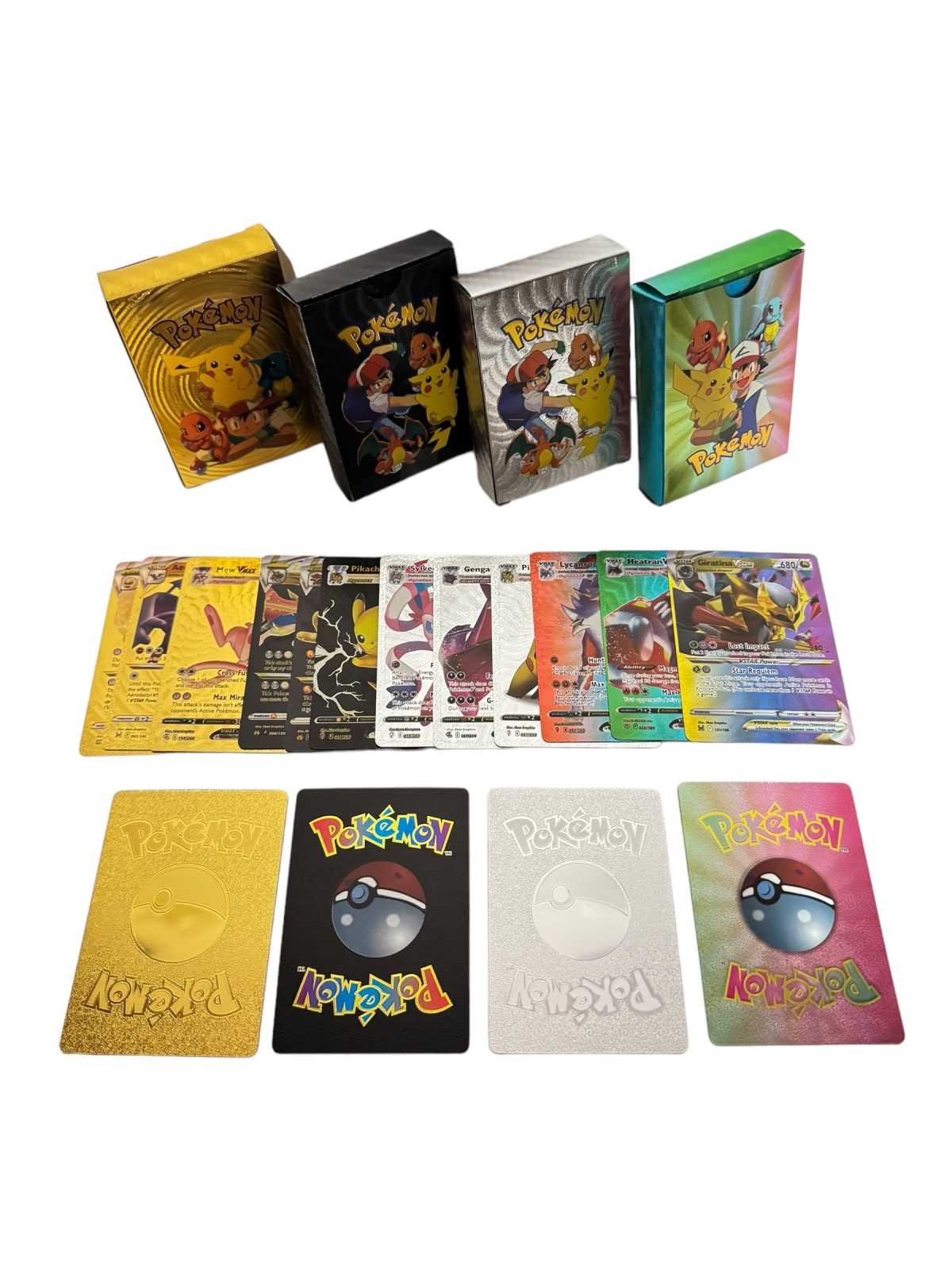 NOWY KARTY POKEMON 4W1 220 SZTUK ZOŁTE – CZARNE – SREBRO-TĘCZOWE 4770986