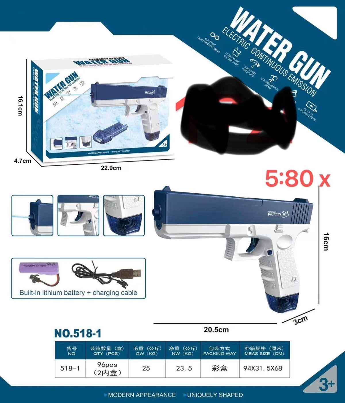Rozmiar/ Kolor: Pistolet na Wodę Elektryczny Automatyczny