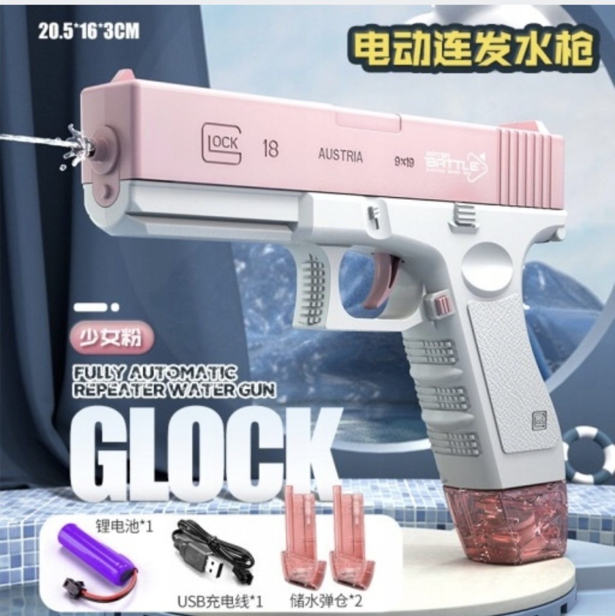 Rozmiar/ Kolor: Pistolet na wodę elektryczny Glock w pełni