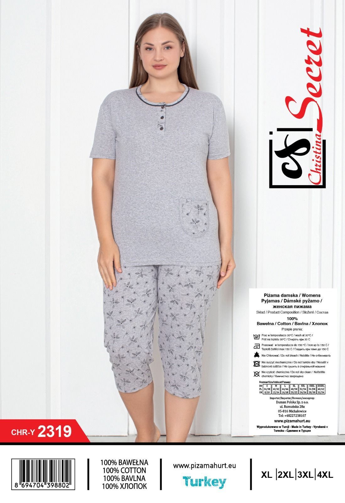 Piżamy DAMSKA TURECKA _size xl-4xl_paczka 12szt_mixkolor 8601129