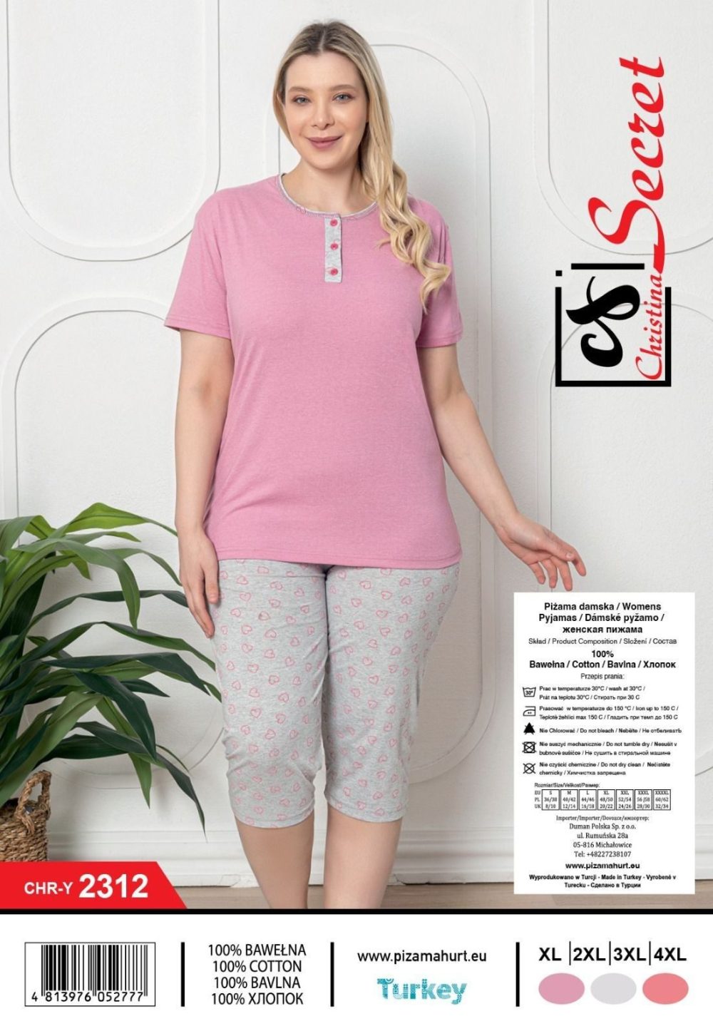 Rozmiar/ Kolor:           Piżamy DAMSKA TURECKA_size xl-4xl_paczka 12 szt_mixkolor