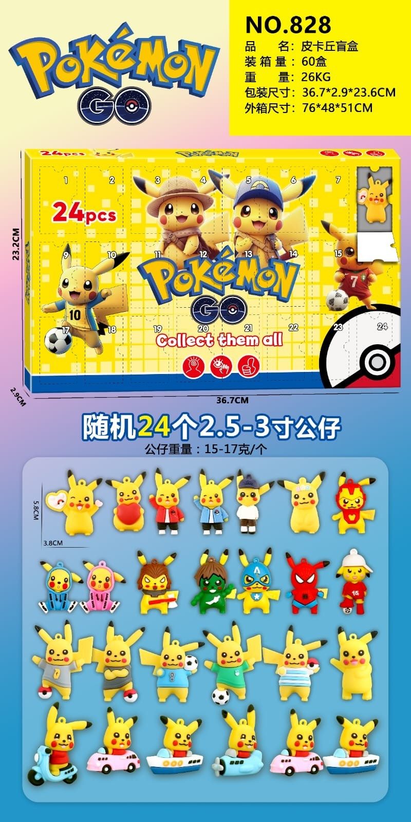 Rozmiar/ Kolor: POKEMON Kalendarz Adwentowy figurki 24PCS