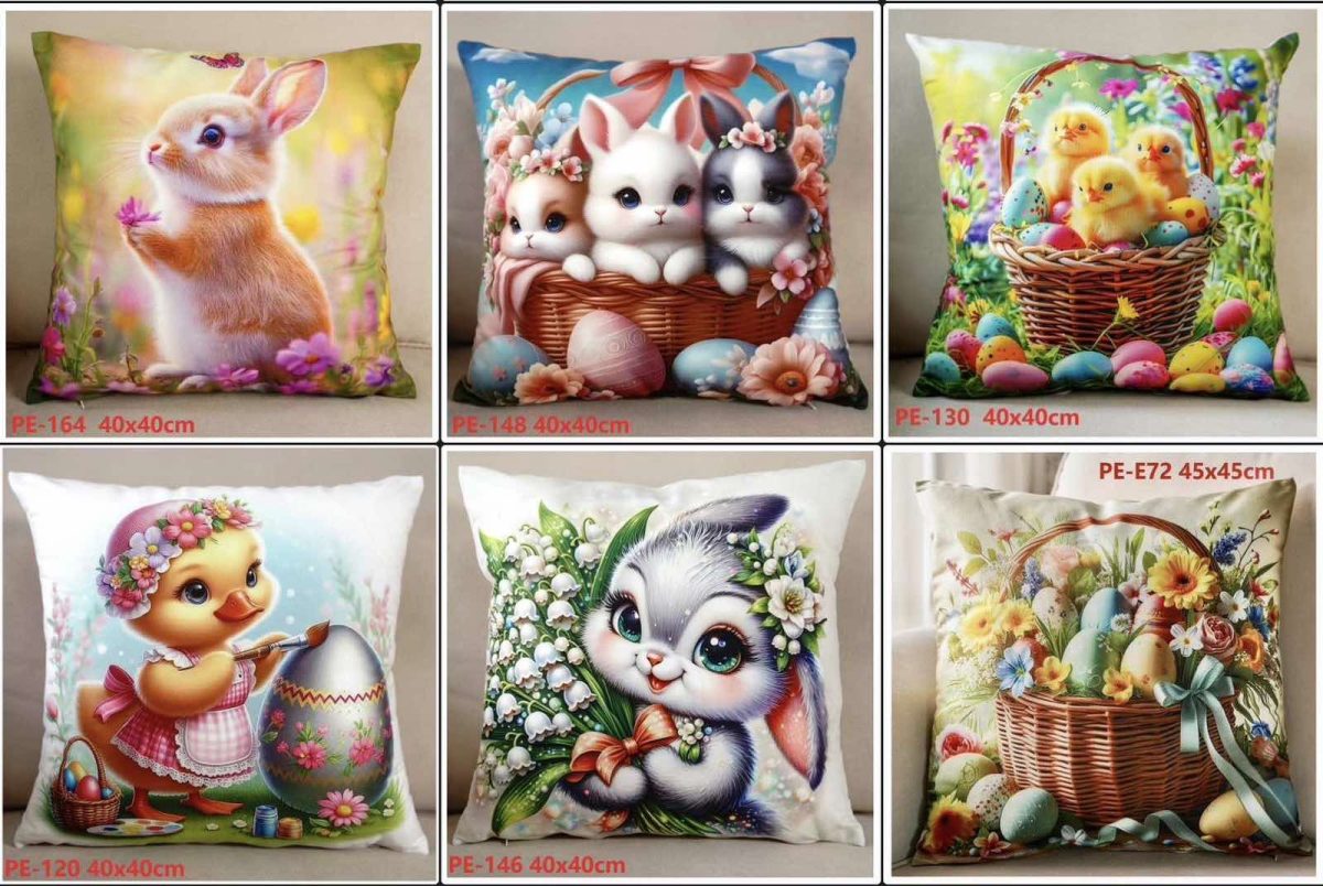 Poszewki dwustronne wielkanocne Rozmiar: 45x45cm_Paczka: 12 szt mix