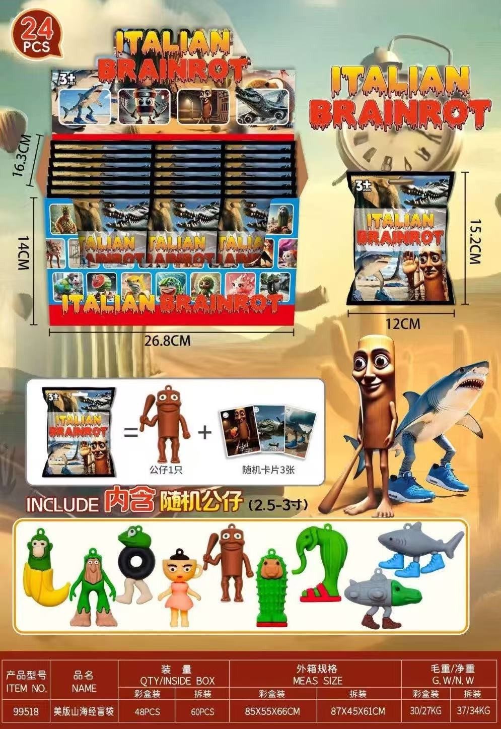 Rozmiar/ Kolor: SASZETKI FIGUREK BRAINROT TUNG TUNG TUNG