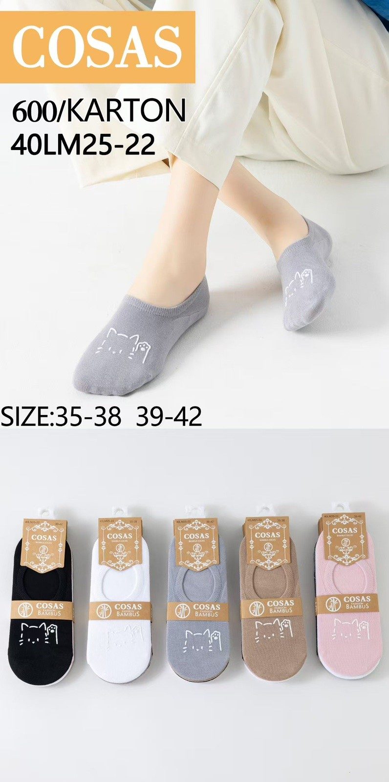 Rozmiar/ Kolor: SKARPETY / STOPKI DAMSKA .SIZE: 35-42_ (40PAR/PACZKA) KOLOR JAK NA ZDZIĘCIU