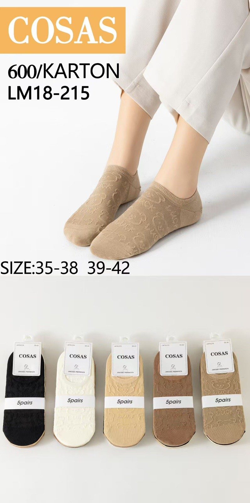 Rozmiar/ Kolor: SKARPETY / STOPKI DAMSKA .SIZE: 35-42_ (40PAR/PACZKA) KOLOR JAK NA ZDZIĘCIU