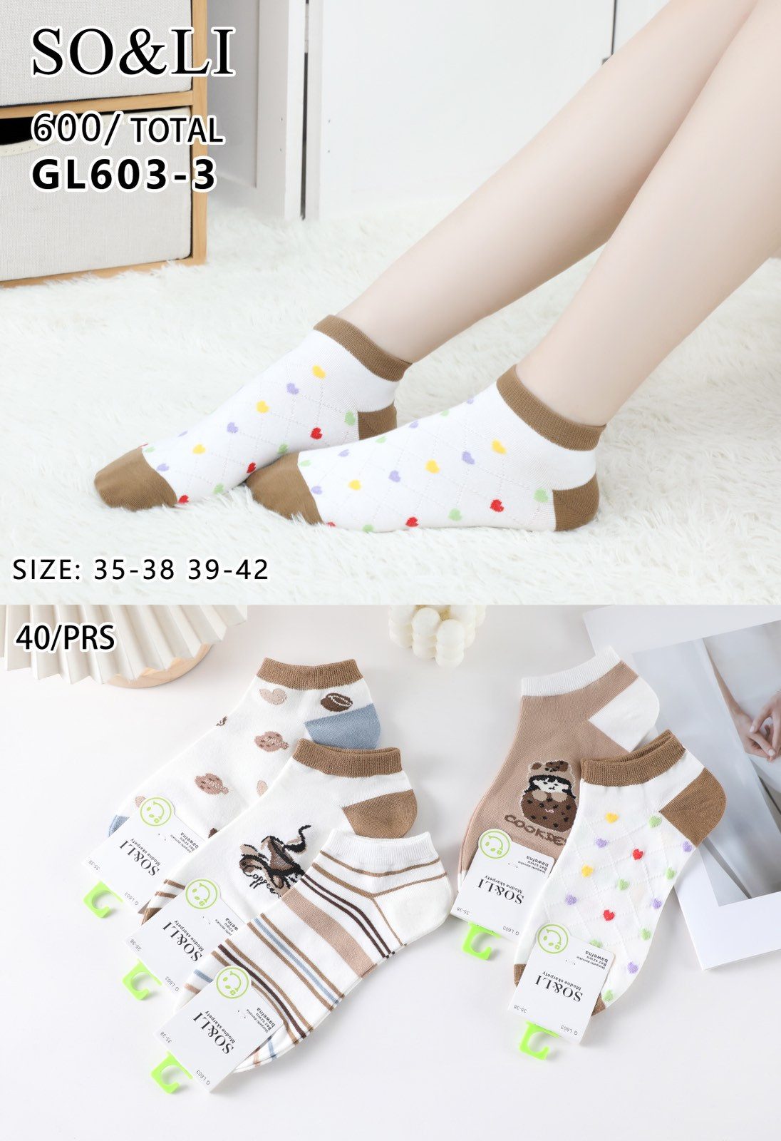 Rozmiar/ Kolor: SKARPETY / STOPKI DAMSKA .SIZE: 35-42_ (40PAR/PACZKA) KOLOR JAK NA ZDZIĘCIU