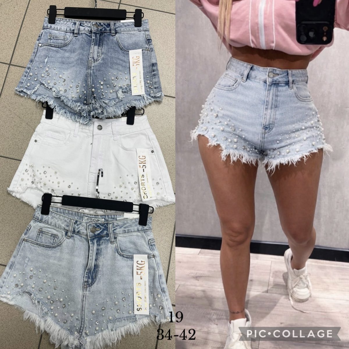 Rozmiar/ Kolor:           Spodenki jeansowe DAMSKA _size 34-42_paczka 10szt_1kolor