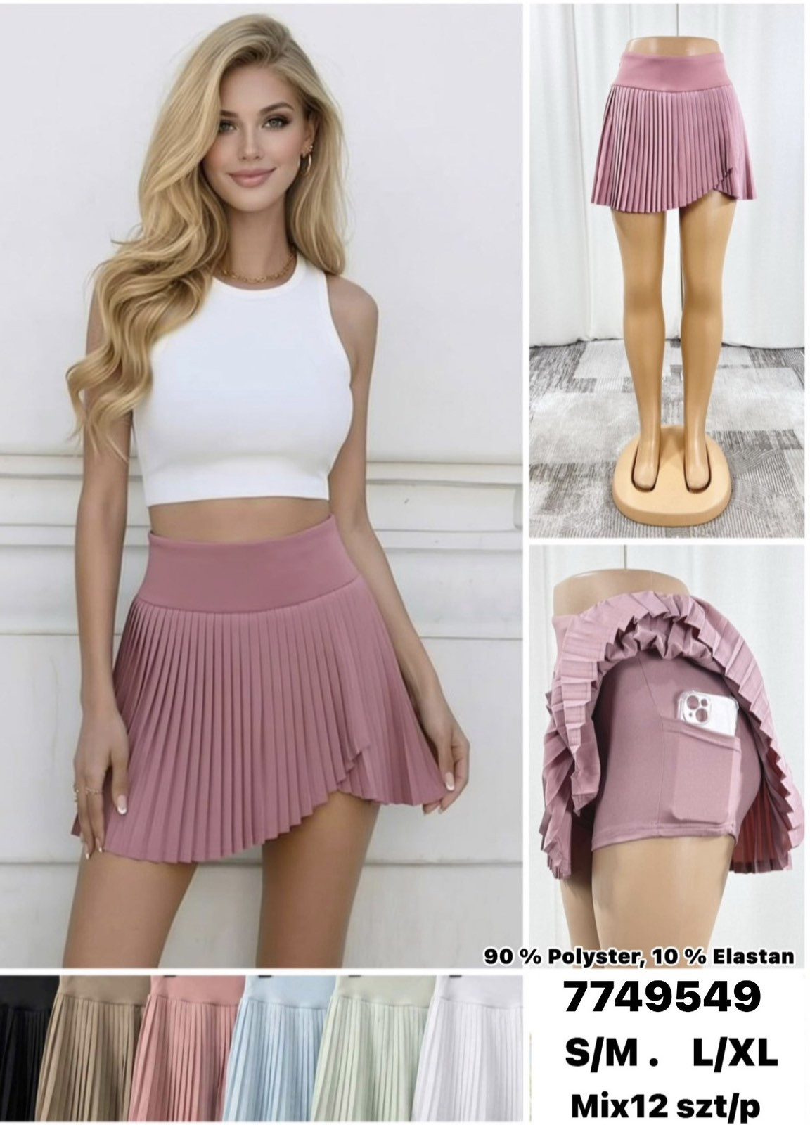 Spódnica krótka DAMSKA _size S-XL_paczka 12szt_MIX kolor 9687051