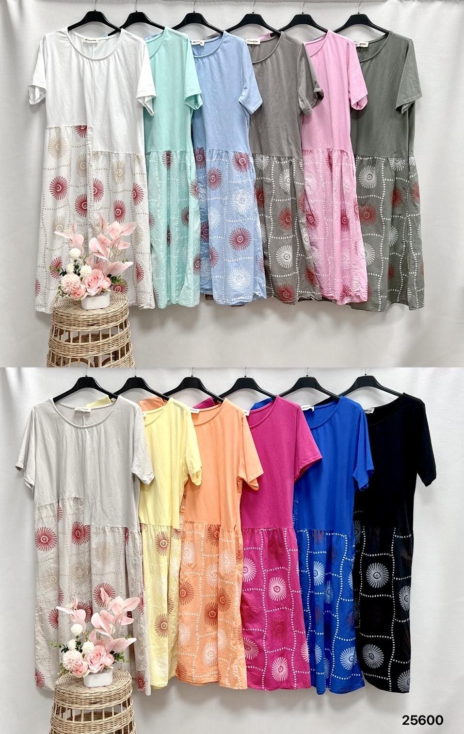 Sukienki. Biust do 140cm długość 105cm.Damskie wloskie_ Size uni _paczka 6szt_mix kolor