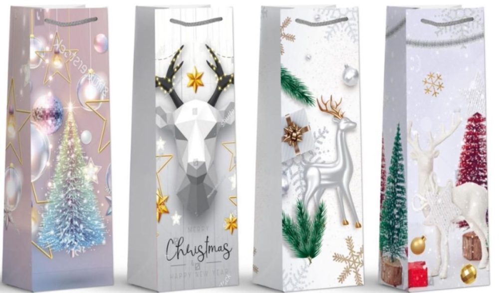 TOREBKA SWIATECZNA 撒粉酒袋/11.5*9*35CM 210G白卡/12 GS1491