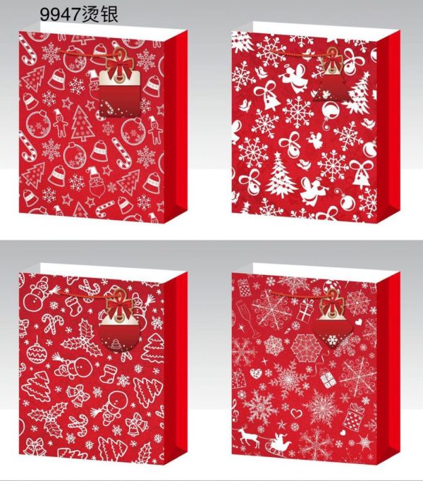TOREBKA SWIATECZNA 烫银礼品袋/26*32*10CM 210G白卡/12一中包混4款 GS1487