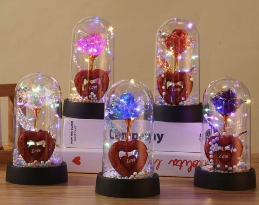 Wieczna WIECZNA RÓŻA W SZKLE ŚWIECĄCA LED