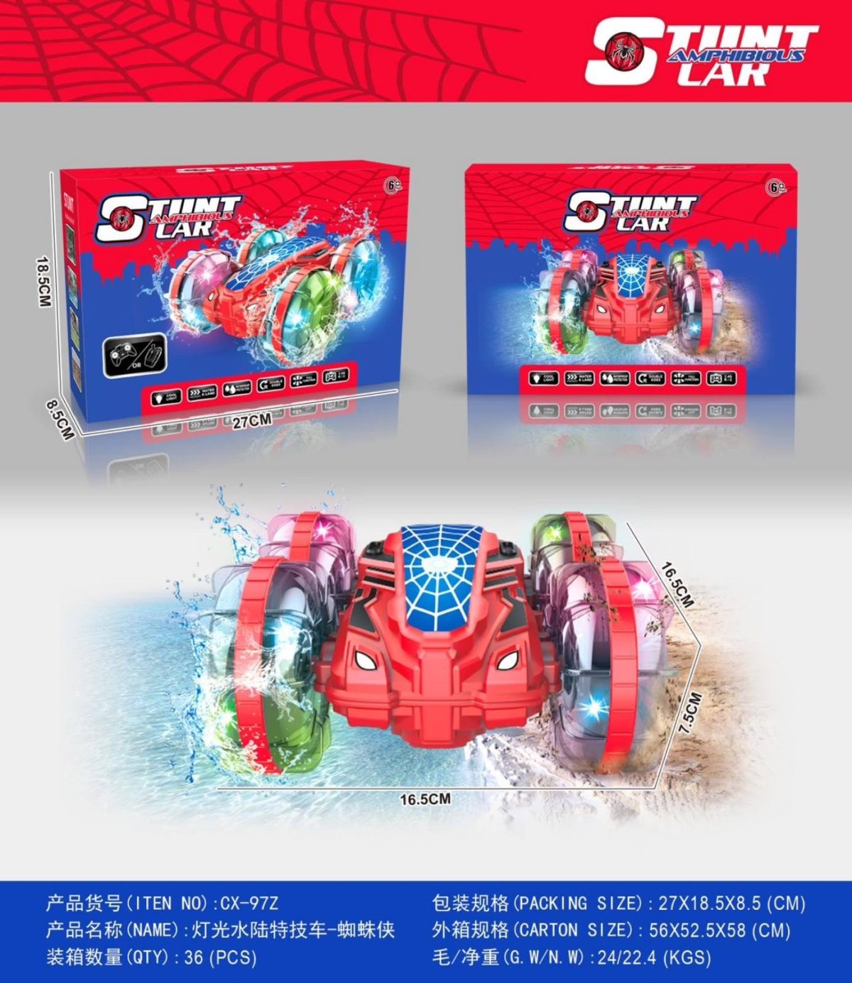 Rozmiar/ Kolor: ZABAWKA AUTO STEROWANIE STUNT AMPHIBOUS CAR
